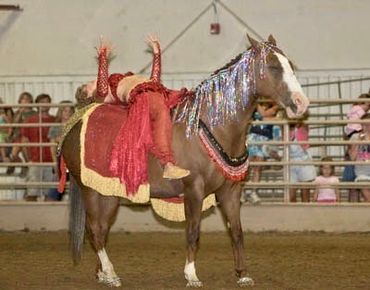 Cricket could do the hula while Cindy was Belly dancing on his back. He was "one of a kind" He taught Cindy to listen to him and connect with his body while riding bareback & bridle-less. Pure Partnership! Between Horse & rider.